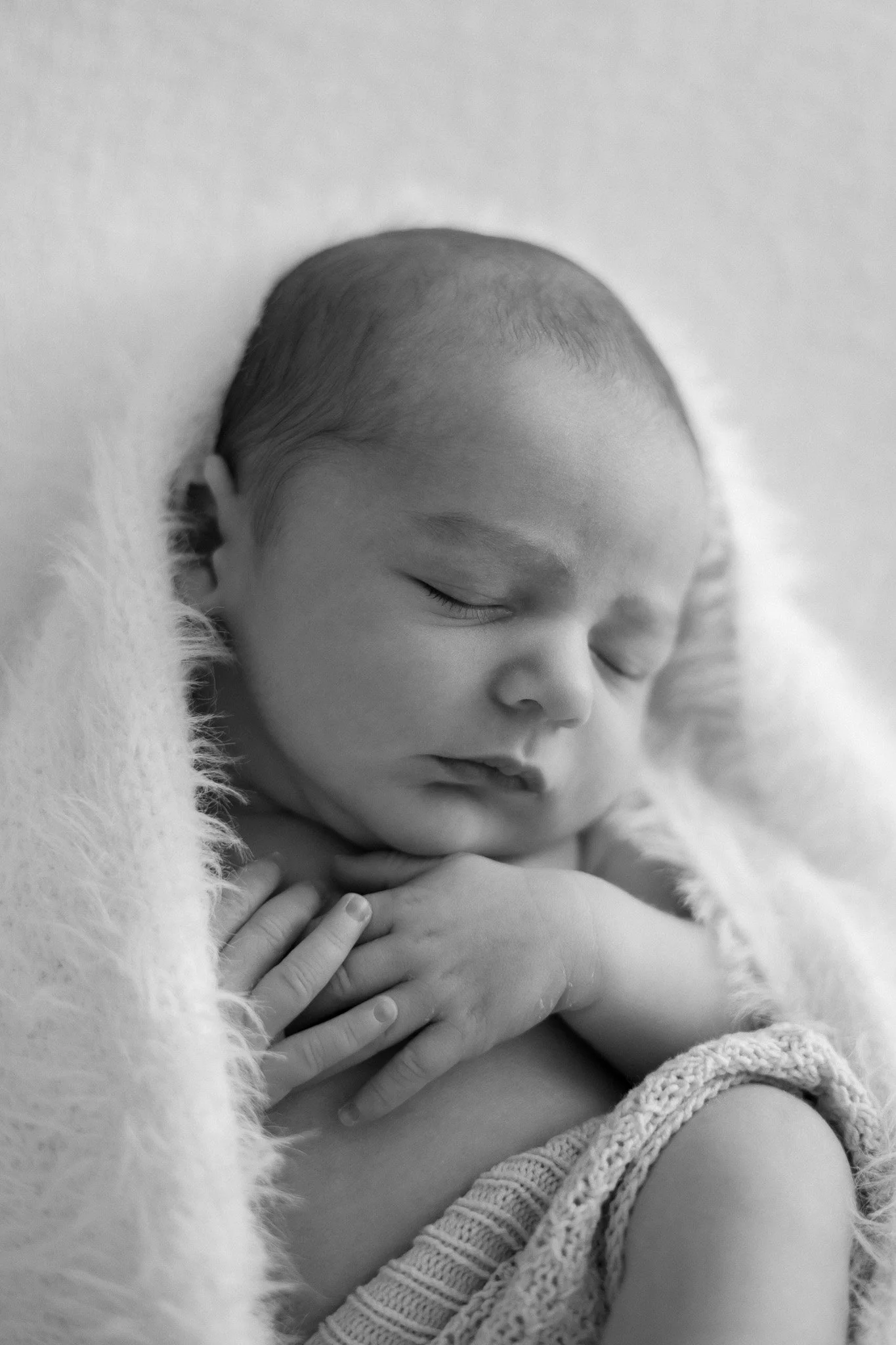 In those early days, we can capture those dreamy, curled-up womb like poses and their tiny, delicate features. If your baby is closer to four weeks, they might already be showing glimpses of their personality, which can make for beautifully expressive images, we’ll still get those sweet, sleepy moments, but we might also capture some gorgeous wide-eyed looks, delicate yawns, or tiny hands clutching yours. No matter when you book your session, we’ll capture timeless photographs that celebrate your baby just as they are.